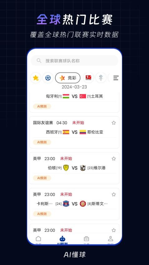 整合英超、西甲、欧冠等60+顶级联赛赛事资源,实时更新赛事日程与转播信息,支持用户自定义关注联赛与球队。2、智能预测系统