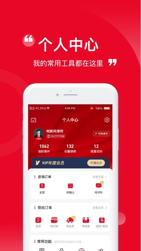 2.案件委托管理:包含进度查询、材料上传、费用结算