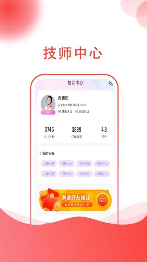 1.资质透明化:每位技师均展示卫健委认证资质与服务年限,用户可查看执业证书编号