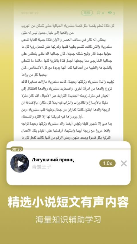 所有音频均由阿拉伯语母语教师团队录制,涵盖日常对话、新闻播报等真实语境。用户可同步查看发音对应的阿拉伯文字,实现听读联动的立体化学习。3、场景化学习模式