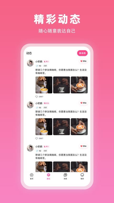三、动态社交模式突破传统聊天局限,用户可通过点赞评论建立初步联系,逐步发展为深度互动。