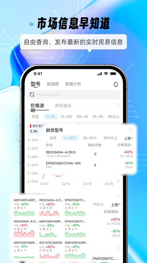 1.支持中英文双语搜索,可识别SPICE模型编号与厂商别称。2.价格波动分析模块包含移动平均线、布林带等6种技术指标。3.库存热力图功能可视化展示各区域仓库的实时库存分布。4. 数据分析报告支持导出为Excel/CSV格式,方便二次处理。5.供求信息板块整合了全球电子交易市场的实时挂牌数据。