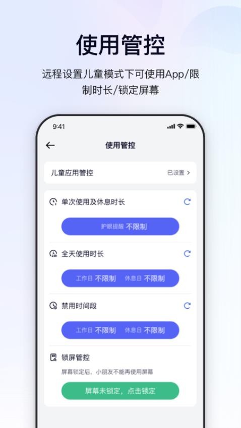 1.精准管控:可设置具体使用时段与时长,支持多设备管理。2.智能分析:生成可视化使用报告,帮助家长掌握设备使用规律。3.多端兼容:适配安卓系统,同步更新保障信息一致性。4.应急响应:紧急锁屏功能可快速终止当前操作。5.家庭协作:支持编辑共享内容,便于多成员协同管理。