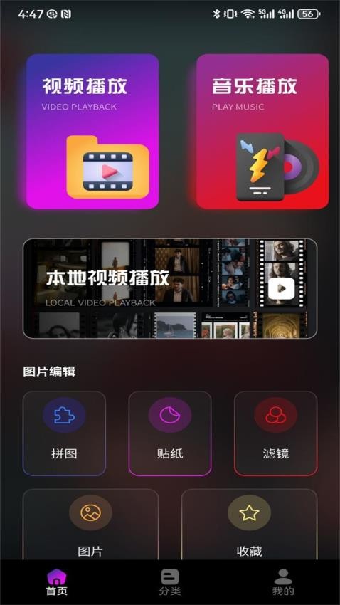 - 打开应用后自动检测存储权限,点击首页「本地资源」即可浏览手机相册视频;
