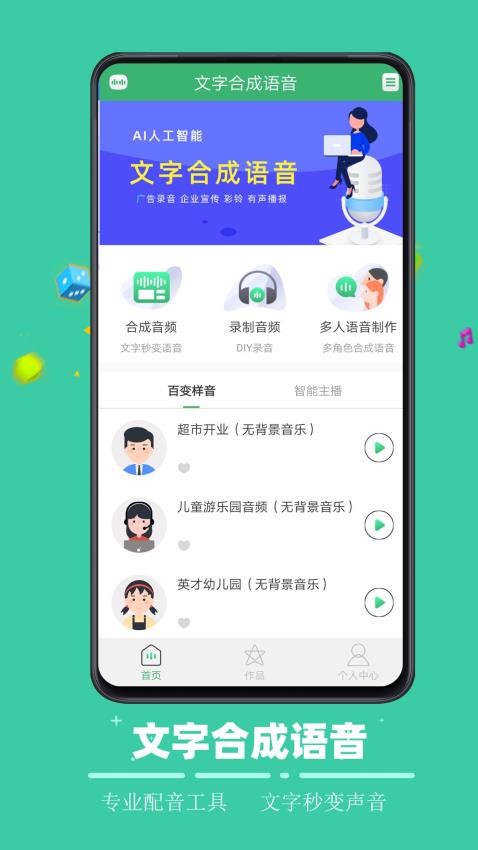 蓝天下载站为您免费提供AI配音哥APP下载。这款语音合成软件依托人工智能技术,为用户提供便捷的视频配音解决方案。通过输入文字即可生成多样化主播音色的音频作品,支持调节语速、音调等参数,内置海量背景音乐资源,帮助用户提升视频创作质量。高清播放与一键录制功能,让音频制作更加高效。
