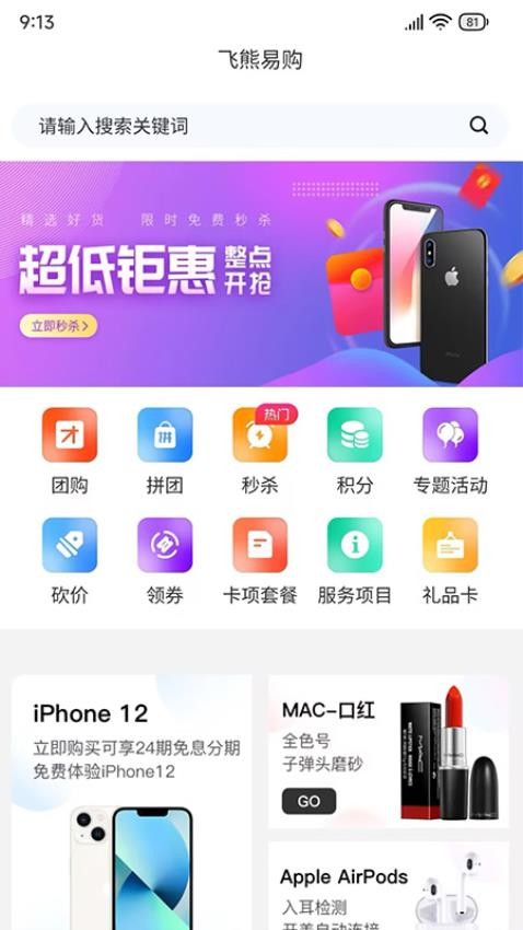 飞熊易购安卓版覆盖粮油食品、办公设备等六大核心品类,提供大额优惠券、秒杀活动等多元福利。用户可通过搜索功能精准定位商品,分销中心支持完成任务获取奖励,订单系统实时更新配送进度。