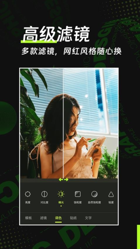 支持实时预览滤镜效果,可调节强度参数,创建专属滤镜组合并保存为个人模板。
