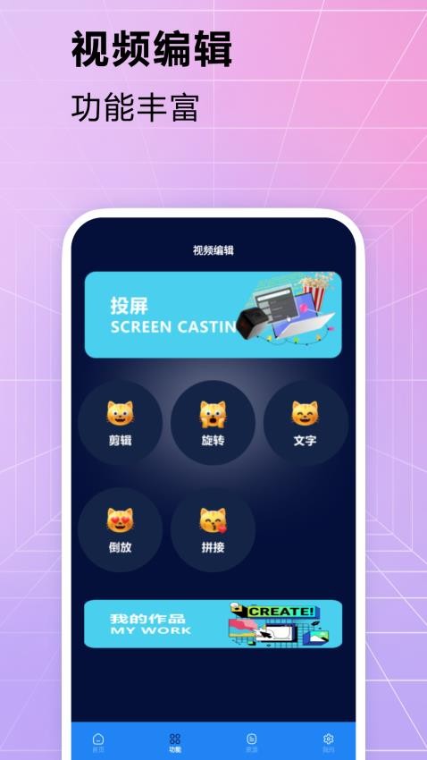 1.影视投屏:支持DLNA/WiFiDirect双协议,覆盖90%智能设备。 2.视频拼接:最多合并10个片段,自动匹配转场特效。 3. 文字添加:提供30+字体库与渐变色方案,支持动态位置调整。 4.作品管理:智能去重算法避免重复存储,支持批量导出。 5.搜索增强:历史记录联想功能提升查找效率。应用测评