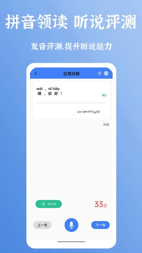 1.全真模拟考试流程,同步最新考试大纲内容,支持实时发音评测与得分反馈。2.专项突破模块针对易错词汇、多音字等重难点进行强化训练。3.情景对话功能覆盖日常交流、职场沟通等多场景,提升实际应用能力。4.每日一句哲理句子与语音跟读功能结合,培养语感与表达能力。5. 数据分析报告可视化呈现学习轨迹,精准定位薄弱环节。